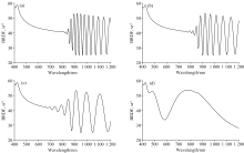 与实验对比可以发现, 当激光功率密度为7.6 W· cm-2时, 可见光谱段内吸收峰的数目和位置, 以及近红外谱段内类周期振荡曲线的幅值, 相较于原始电池发生变化, 此情况下辐照区域的GaInP层出现了一定程度的损伤, 但GaAs层未出现明显变化, 该现象与图5(a)和图6(a)所示的电池表面形貌相吻合; 在14.2 W· cm-2功率密度激光辐照后, 可见光谱段内的吸收峰消失, 近红外谱段内曲线的幅值衰减, 而频率基本不变, 此时辐照区域GaInP层已基本完全损伤。