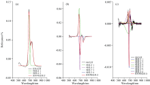 | 图2 光谱峰拟合图 (a): 原始光谱拟合图; (b): FD光谱拟合图; (c): SD光谱拟合图Fig.2 Spectral peak fitting diagram (a): Original spectral fitting figure; (b): FD spectral fitting figure; (c): SD spectral fitting figure |