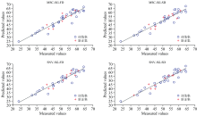| 图3 潜在发病叶片SPAD反演模型实测值与预测值的相关性Fig.3 Correlation between measured value and predicted value of SPAD inversion model for potentially diseased leaves |
