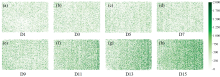高光谱图像不仅能够对生物量浓度做出准确预测, 还可将模型应用于图像的每个像素点。 通过对每个像素点的生物量浓度进行预测, 从而得到生物量在高光谱图像中的分布图。 图5(a— h)为CARS-MLR模型预测斜生四链藻藻液样本中生物量的高光谱图像反演热力图。 可以看出, 从培养第9天起[图5(a— e)], 斜生四链藻生长速率显著增加, 分析认为培养前期(D1— D9)微藻以适应环境为主(调整期), 生物量增长较为滞缓, 而从D9起进入生长指数期。
