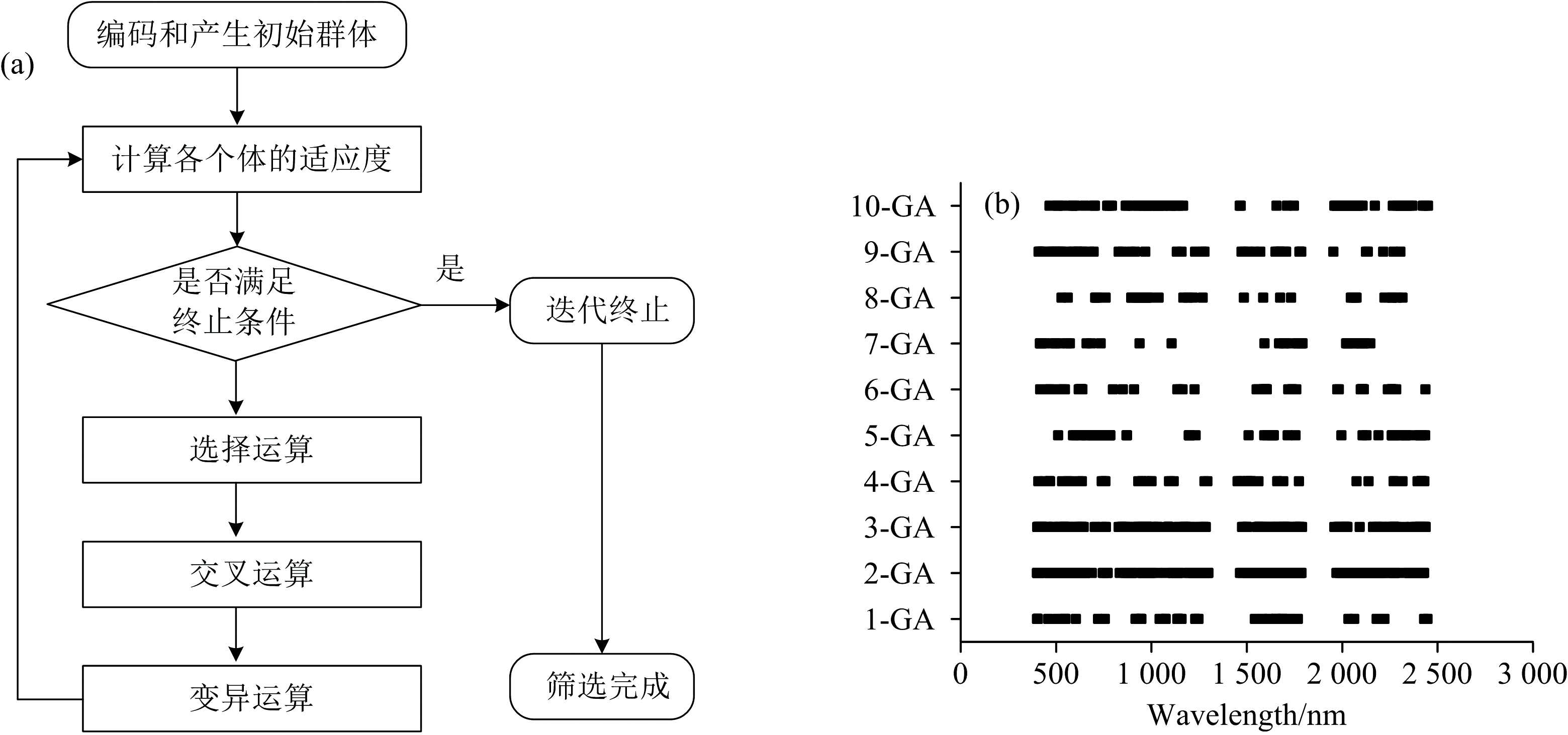 采用GA算法, 分别筛选10个分解尺度特征波段, 由图9(a)可知, GA算法据预定的目标函数对样本进行评估, 给出一个适应度值, 基于此适应度值, 选择最佳样本。 图9(b), 第1~5、 9~10尺度选择的特征波长在400~2 500 nm分布较为均匀; 第6~8尺度选择的特征波长主要分布于760~2 500 nm近红外波段。 不同尺度筛选特征数量占全波段数量的2.45%、 9.87%、 11.12%、 3.59%、 3.99%、 3.88%、 1.94%、 2.05%、 2.91%、 3.94%。 逐尺度计算所筛选特征波段的均方根, 构建GA-EFV。