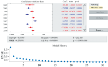 逐步回归算法(stepwise regression, SR)通过逐个引入贡献相对大的显著自变量来增加回归方程的准确性, 同时排除非显著变量, 减少冗余信息干扰, 最终得到最优的回归模型。 由于CARS算法筛选出的特征波段数量较大, 需要进一步降维, 采用SR算法对CARS算法筛选后的广陈皮高光谱特征波段进一步筛选, 最终得到22个特征波段, 如图6所示。