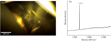 | 图6 显微拉曼拍摄的完整包裹体晶体以及拉曼面扫描测试区域Fig.6 Micro-Raman photo of complete diamond inclusion and Raman mapping area |