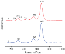 | 图2 贫富铁矿拉曼光谱图 (a): 贫铁矿拉曼光谱图; (b): 富铁矿拉曼光谱图Fig.2 Raman spectra of BIF and high-grade iron ores (a): Raman spectra of BIF ore; (b): Raman spectra of high-grade iron ore |