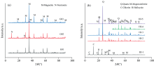 将每个矿石样品粉碎成粉末并进行X射线粉晶衍射分析。 测试仪器为荷兰PANalytical(帕纳科)公司生产的EMPYREAN(锐影)X射线衍射仪, 配置PIXcel3D探测器。 X光源为铜靶, 测试条件为: 工作电压/电流: 40 kV/40 mA, 起始角度: 5° , 终止角度: 90° , 扫描时间: 20 min。 所用分析软件为Jade软件。