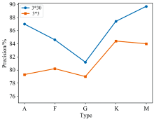 在深度学习领域中, 通常采用的卷积核大小为3×3, 或者5×5等正方形卷积核, 但本文处理的二维光谱图像的大小为11×4 136, 长宽比非常悬殊, 常用大小的卷积核无法满足充分提取图像特征的需求。 图7为分别采用3×3和3×30的卷积核得到的分类情况, 分类结果表明, 对于长宽比悬殊的单根二维光谱, 相较于3×3的卷积核, 使用3×30的卷积核可以获得更高的分类准确率, 有着更好的感受野, 可以充分利用区域中的上下文信息, 有效提取出有利于图像分类的特征。