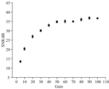 增益因子不影响激光光强的波动程度和系统响应时间, 图7显示了增益因子对荧光信号信噪比的影响。 该测试中调制频率为2 kHz, 调制幅度为400 mV, 滑动滤波窗口数据量为500。 从图中可以看到, 随增益因子的增加, 解调信号的信噪比逐步提升并趋于稳定。 基于信噪比增长趋势分析, 选择50倍增益作为最优参数, 以确保信号放大效果的同时避免过度增益。