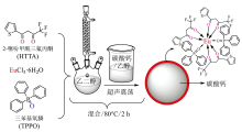 为了解决上述稀土资源利用中存在的问题, 科研人员将稀土配合物掺杂到无机材料或聚合物中形成复合荧光材料。 张洪杰[10]课题组通过溶胶-凝胶的方法制备稀土配合物和二氧化硅的复合荧光材料。 闫冰[11]课题组提出分子自组装的方法将稀土配合物自组装到介孔硅酸盐中, 这不仅节约了稀土的用量, 而且在一定程度上改善了稀土配合物的发光特性及稳定性。