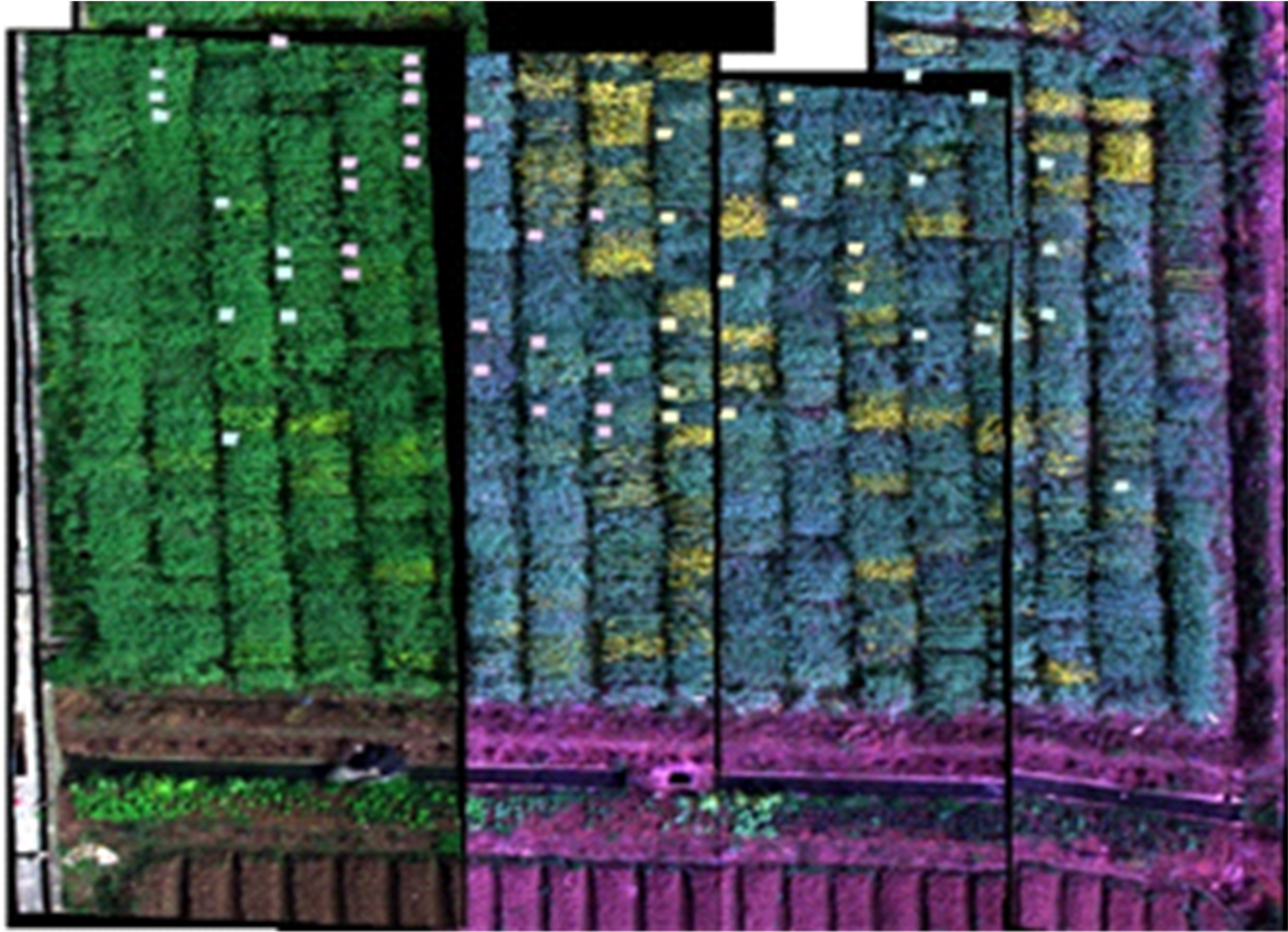 实验于2023年3月至5月在湖北省武汉市华中农业大学油菜试验田开展。 所选取的实验田的中心坐标为114° 21.1'E, 30° 28.0'N, 研究区内均匀种植500份不同品种油菜, 每个种植小区长约为1.5 m, 宽约为0.9 m, 小区内以等间隔的方式种植三行油菜。