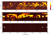 ![]() | 图4 Coif3下叶片含水量模型随波长和尺度变化的决定系数(R2)相关尺度图Fig.4 Correlation scale diagrams of the coefficients of determination (R2) of the leaf moisture content model with wavelength and scale under Coif3 |