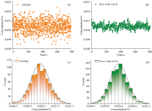 通过前述分析, BOA-VMD-AWTD算法可有效抑制噪声干扰, 展现出优越降噪效果, 优于PSO-VMD和BOA-VMD算法。 为验证BOA-VMD-AWTD算法稳定性, 在800 s 内对预设体积浓度为0.05% CO连续采样, 并对采集数据高斯分布分析, 如图7所示。