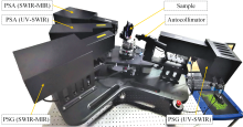 宽波段大角度光谱椭偏基本原理如图1所示, 主要由紫外到短波红外起偏臂PSG(UV-SWIR)、 短波红外到中波红外起偏臂PSG(SWIR-MIR)、 检偏臂PSA和样品台S四部分组成, 其中检偏臂PSA由紫外到短波红外PSA(UV-SWIR)和短波红外到中波红外PSA(SWIR-MIR)两个检偏臂单元组成。 根据透反射及入射角要求, 检偏臂PSA和样品台S可大角度旋转。