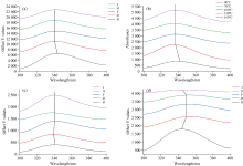 图3是榨油温度对核桃蛋白组分荧光光谱的影响。 蛋白质中的色氨酸(Trp)、 酪氨酸(Tyr)和苯丙氨酸(Phe)的侧链生色基团在波长290 nm光激发下会产生荧光, 通过分析最大荧光峰位移变化和峰强度变化可推断出这3种芳香族氨基酸的暴露情况[17]。 在未变性的天然蛋白质中, 这3种氨基酸主要位于蛋白内部, 但当蛋白质结构展开时, 这些氨基酸逐渐暴露, 最大荧光峰位置发生红移; 相反, 最大荧光峰发生蓝移, 则是蛋白结构收缩, 疏水氨基酸被包裹在蛋白质分子内部导致。 清蛋白和球蛋白在榨油温度超过130 ℃后最大荧光峰发生明显红移, 说明温度超过130 ℃清蛋白和球蛋白三级结构展开导致其内部疏水性氨基酸暴露。 醇溶蛋白在榨油温度超过100 ℃后, 其最大荧光峰先发生轻微蓝移, 疏水性氨基酸被包裹, 其后, 当榨油温度超过130 ℃, 最大荧光峰发生明显红移, 蛋白结构展开导致其内部疏水氨基酸暴露。 图3(d)是不同榨油温度下的谷蛋白荧光光谱, 值得注意的是, 该光谱与其他三种蛋白荧光光谱形态有较大差异, 且受榨油温度的影响峰型变化更加频繁, 表明其三级结构更不稳定, 当榨油温度超过40 ℃, 最大荧光峰先发生红移, 谷蛋白结构内部疏水基团暴露, 当榨油温度在70~100 ℃时, 最大荧光峰位置未发生明显位移, 但当温度超过130 ℃, 其最大荧光光谱发了明显蓝移, 蛋白结构收缩, 其疏水基团再被包裹住。