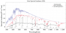 可以看到总响应度实际上是响应度函数R(λ )与输入辐射光谱E(λ , t)在波长维和时间维的一个卷积。 假设辐射表的响应度R(λ )随时间的变化可以忽略, 那么总响应度RS(t)随时间的变化, 主要是由测量的太阳辐射光谱随时间变化的特性而引起的变化。 ISO9060: 2018中定义的晴空光谱误差, 是以一个稳定无时变的参考太阳光谱Eλ , Ref(λ )(AM1.5)作为规定标准条件从而获得校准响应度RS, Ref, 然后以其他各种实际条件下的太阳光谱Eλ , Test(λ )条件下对应的响应度RS(t)的相对变化率。