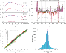 图8(b)展示了中高纬度地区(北纬49° )晴天条件下, 散射辐射与总辐射比值(RDG)的光谱依赖性和日变化特征。 在太阳正午时分(AM约为2.3), 积分得到的RDG(黑色虚线)曲线大约稳定在 0.3 左右, 而在日出和日落时段, 当散射作用占主导时, 该比值接近 1(达到峰值)。 这种变化对光谱辐射计与基于热电堆的总辐射表之间的测量一致性有显著影响。
