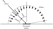 $\begin{aligned} \operatorname{RDG}\left(\lambda, \theta_{z}\right) & =\frac{E_{\mathrm{DHI}}\left(\lambda, \theta_{z}\right)}{E_{\mathrm{GHI}}\left(\lambda, \theta_{z}\right)} \\ & =\frac{E_{\mathrm{GHI}}\left(\lambda, \theta_{z}\right)-E_{\mathrm{DNI}}\left(\lambda, \theta_{z}\right) \cos \left(\theta_{z}\right)}{E_{\mathrm{GHI}}\left(\lambda, \theta_{z}\right)} \end{aligned}$(2)