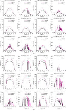图8(a)给出了整日内GHI和DNI光谱辐射数据的谱段范围波长积分辐射随时间变化的曲线与传统热电型辐射表的数据曲线, 同时对应给出了天顶角随时间变化的曲线, 如图8(a) 所示。