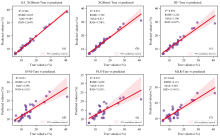 为评估所提模型的有效性, 本研究将GA-XGBoost模型与多种常用的回归方法进行了对比, 包括标准XGBoost、 多元线性回归(multiple linear regression, MLR)、 偏最小二乘回归(partial least squares, PLS)随机森林(random forest, RF)和支持向量机回归(SVM)模型。