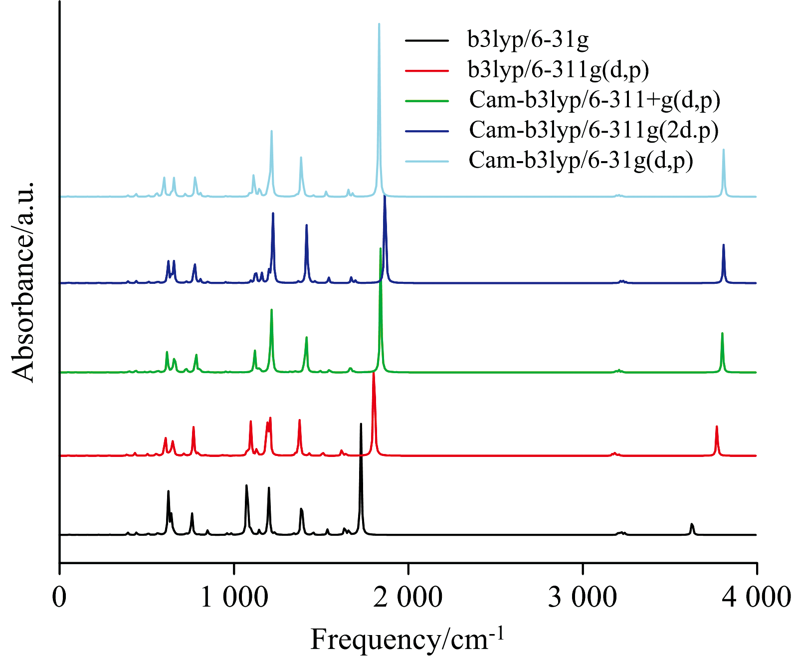 | 图1 利用TD-DFT方法结合不同基组计算了BP6DC的红外光谱Fig.1 The infrared spectra of BP6DC calculated by TD-DFT method combined with different basis sets |