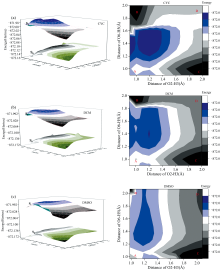 | 图8 PB6DC分子在三种溶剂下S0, S1态的势能曲面及S1态的势能等值面Fig.8 Potential energy surface of S0, S1 states and potential energy isosurface of S1 state of PB6DC molecule in three solvents |