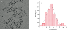 | 图1 (a)CoIrOx纳米颗粒的透射电镜图(标尺: 100 nm); (b)50个CoIrOx纳米颗粒的粒径分布柱状图Fig.1 (a) HRTEM image of CoIrOx NPs (Scale bar: 100 nm); (b) Histogram of the particle size distribution of 50 CoIrOx NPs |