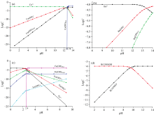 由图2可以看出, 在水溶液中, 随着pH值的升高, Ca2+分别以Ca2+、 Ca(OH)-、 Ca(OH)2(aq)的形式存在。 当pH值小于12.74时, 主要以Ca2+、 Ca(OH)+形式存在, 且溶液中的Ca(OH)+浓度随着pH值的升高而逐渐增大, 到pH值等于-12.74时达到最大。 pH值大于12.5, 溶液中Ca2+、 Ca(OH)+减少, 主要以Ca(OH)2(S)沉淀存在。 Fe3+的水解组分存在形式是多样的。 当pH值小于2.4时, 铁离子主要以Fe3+、 Fe(OH)2+和Fe(OH)+的形式存在, 并且随着pH值的升高, Fe3+、 Fe(OH)2+和Fe(OH