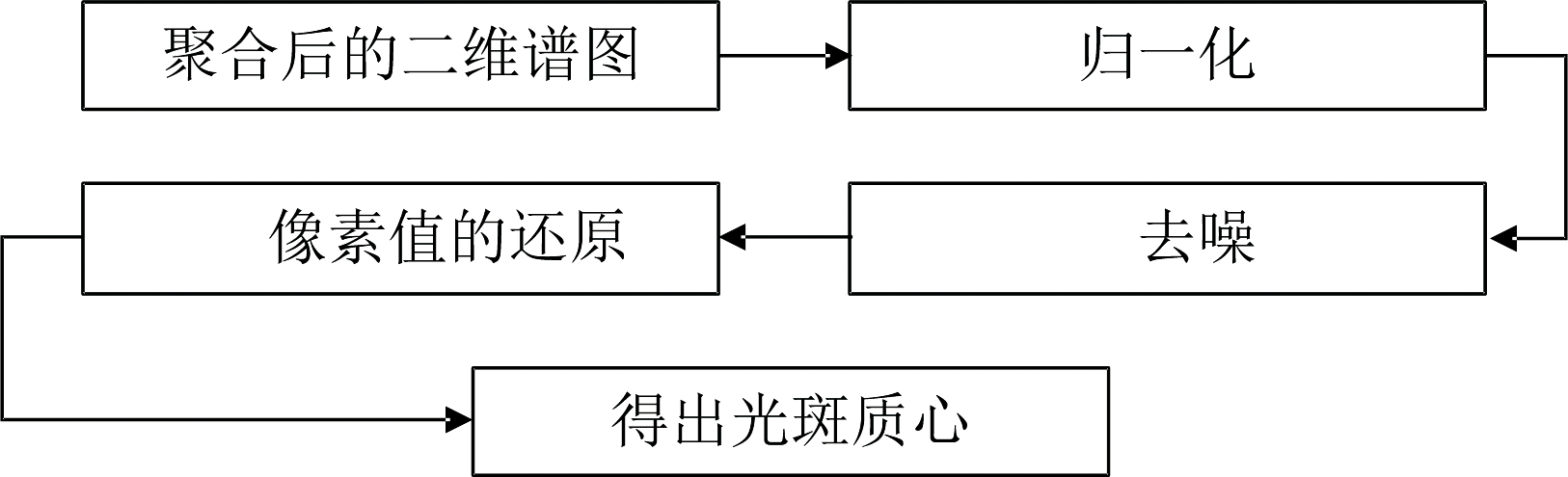 在得到捕获的十张谱图后, 进行像素值叠加聚合成一张光谱图像, 经过归一化、 去噪、 像素值还原进行最后的光斑质心提取, 如图9所示此时寻找到光斑信号中像素最大值处即为光斑质心坐标。