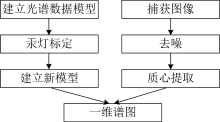 谱图信息处理的核心是将面阵探测器采集到的二维图像信息转化为横纵坐标分别为波长和光强的一维谱图信息, 其主要任务之一是提高光谱数据的质量, 消除仪器和测量过程中的噪声干扰, 提高光谱分辨率和信噪比。 谱图处理流程涵盖多个环节, 原始光信号通过去噪、 质心提取再与汞灯标定所建立的新谱图数据模型做匹配, 得到一张一维谱图信息, 如图1所示。
