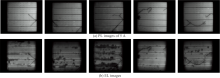 | 图5 PL图像和EL图像关于伪影的对比 (a): 5 A对应的PL图像; (b): EL图像Fig.5 Comparison of artifacts between PL images and EL images (a): PL images of 5 A; (b): EL images |