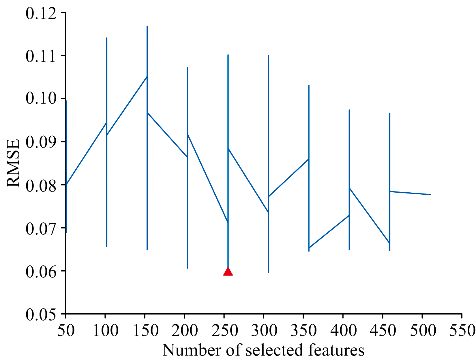$\mathrm{RMSE} =\left(\frac{1}{n} \displaystyle\sum_{i=1}^{n}\left(y_{i}-f_{i}\right)^{2}\right)^{\frac{1}{2}} $(8)