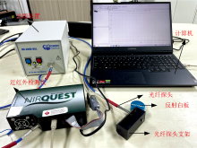 试验采用海洋光学生产的NIR-QUEST小型傅里叶变换近红外光谱仪, 型号为512, 波长范围为900~1 700 nm。 水分子在NIR波段1 450和1 940 nm显示显著的吸收峰, 分别对应于O— H键的第一倍频和第二倍频振动, 这些峰可通过预处理与特征提取算法有效识别。 积分时间为100 ms。 由海洋光学生成的DH-2000光源发射装置, 氘灯和钨卤灯联合使用, 近红外检测平台及其接线图如图2所示。