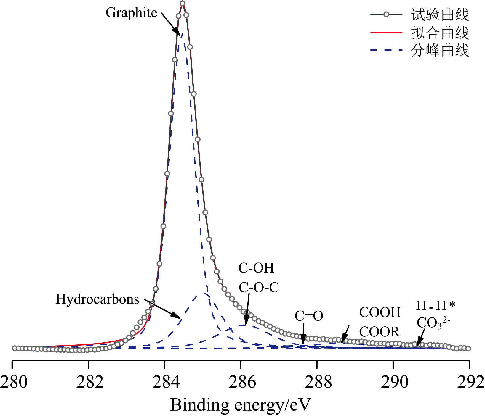 | 表4 煤系石墨的XPS C(1s)拟合结果 Table 4 XPS C(1s) fitting results of coal measures graphite |