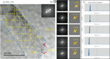 (2)HRTEM结果显示高变质无烟煤芳香层片具有局部定向域, 可见数层堆叠, 延伸长度不稳定, 在煤系石墨微晶表面或边缘还出现了部分以乱层结构形式存在的无定形碳, 选区衍射图既有清晰规整的衍射点阵又有衍射强度相对减弱的衍射环。