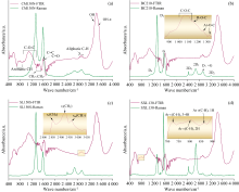 波长780~2 500 nm范围的近红外区代表分子振动基频的倍频和合频的谱带, 主要涉及C— H、 C═O和O— H的伸缩振动的合频或倍频[16]。 其中, 1 400和1 900 nm处的吸收峰与自由水、 结合水或吸附水有关; 2 100~2 600 nm范围的吸收峰可归因于黏土矿物的金属— OH倍频以及C— H伸缩振动的合频和倍频。 此外, 在1 700和2 300~2 500 nm范围有时也会出现较弱的条带, 这些条带对应于各种脂肪族侧链C— H伸缩振动、 含氧官能团的倍频和合频。 石墨化程度越高, 表面结构越完善, 780~2 500 nm吸收峰越不明显[图8(a)]。 这可能是因为更完善的表面结构减少了分子振动的无序性, 从而降低了吸收峰的强度。