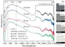 波长380~780 nm范围为可见光区, 主要与分子或原子的电子能级跃迁相关。 煤系石墨颜色变化是有机组分表面和内部各类光线的综合作用的反映, 石墨化作用阶段, 涡层状叠片结构逐渐向石墨微晶结构过渡, 微晶尺寸和反射率急剧增加, 各向异性显著。 利用Colortell在线颜色工具(https://www.colortell.com/colortool), 将380~780 nm光谱数据转化为CIE1976 L* a* b* 色彩空间数值, 对获取的L* 、 a* 、 b* 值进行颜色仿真[图8(b)], 选择了色差Δ E76(ab)最小值的仿真颜色— — 潘通PANTONE Cool Gray。 4种煤样仿真颜色分布于Cool Gray 9 CP至2CP; 亮度(L* )体现颜色的强弱(单位投影面积上的反光强度), 随着石墨化作用的增加, 其本身物理、 化学结构变化导致相关反光能力增加, 如SXL130的L* 最高达82.7。