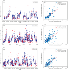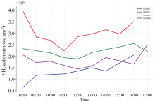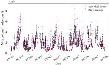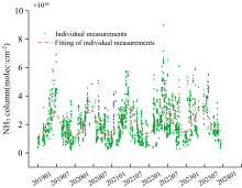 | 图1 合肥地区氨气柱浓度单次测量值和日平均时间序列Fig.1 Individual measurement values and daily averaged time series of ammonia column concentration in the Hefei area |